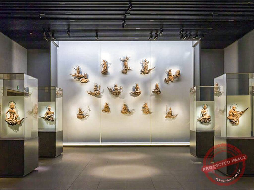| This facility is architecturally defined by its innovative subterranean design, which was constructed to harmonize with the historical landscape while providing a climate-controlled environment for sensitive artifacts. The layout is characterized by a series of minimalist galleries that emphasize the artistic and spiritual gravity of the collection. The craftsmanship of the museum is reflected in its specialized lighting and display techniques that highlight the intricate details of nearly millennium-old masterpieces. The significance of the museum lies in its role as a safeguard for the original artistic elements of the Byodoin complex. The environment is characterized by a polished sense of reverence and scholarly depth. This atmosphere is most visually compelling in the main gallery, where the original 26 “Praying Bodhisattvas on Clouds” are displayed at eye level, allowing for a disciplined observation of their varied expressions and musical instruments. The sensory experience is defined by the contrast between the dark, atmospheric corridors and the brightly illuminated relics. The Hoshokan Museum houses the original eleventh-century bronze temple bell, which is widely considered one of the most beautiful in Japan for its elaborate relief carvings. It also displays the original pair of bronze phoenixes that once sat atop the roof of the Phoenix Hall, providing an authoritative look at the metallurgical skills of the period. Interpretive displays utilize high-resolution digital imagery to recreate the vibrant colors that once adorned the interior of the temple. The site remains a premiere destination for those seeking to engage with the refined craftsmanship of the Japanese aristocracy. |
