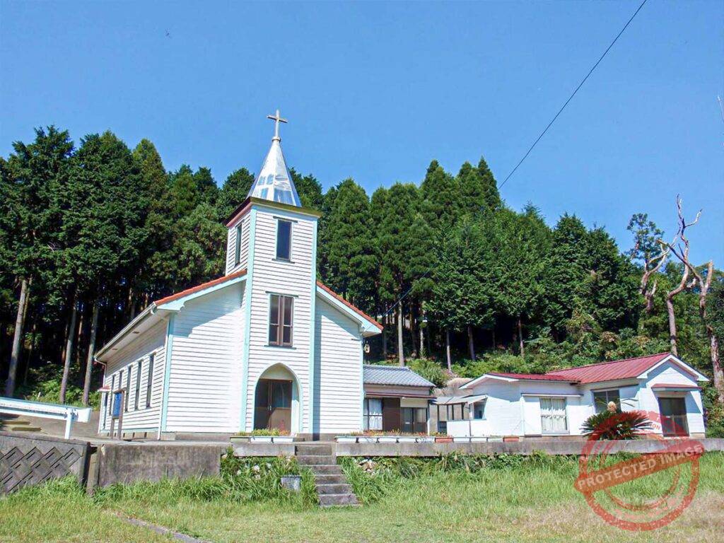 Sanohara Catholic Church is a unique outlier in the religious landscape of the Goto Islands. While the vast majority of churches in the archipelago are perched on coastal cliffs or tucked into hidden inlets, Sanohara is located in a mountain village that does not face the sea. This inland setting provides a different atmosphere.