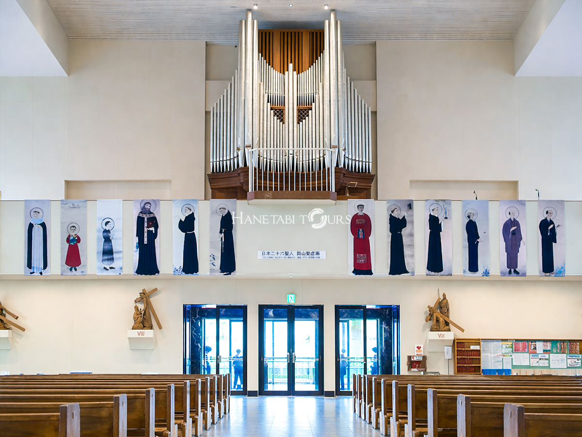 St. Mary’s Cathedral, serves as the cathedral of the Catholic Archdiocese of Osaka, designed by Eikichi Hasebe, features stained-glass windows depicting the life of Christ and a grand pipe organ with 2,400 pipes.