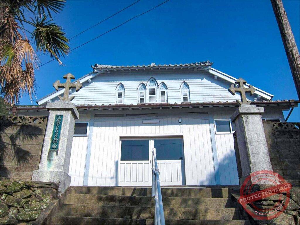 Ebukuro Catholic Church stands as a powerful symbol of communal perseverance and modern restoration. The history of the local faithful is marked by hardship. Despite the official lifting of the ban on Christianity in 1873, the believers in Ebukuro faced severe local persecution that same year. In 1882, under the spiritual guidance of Father Brel, the community succeeded in constructing their first permanent house of worship. Until the early 21st century, it held the distinction of being the oldest wooden church in the Goto Islands to feature a “bat-wing” rib-vaulted ceiling.